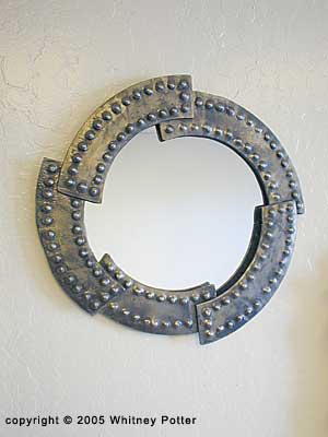 The boilerplate mirror takes its look from old riveted steam boilers.