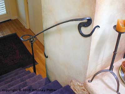 This whimsical handrail orbits the newel post before eventually landing. It is one of a set or three handrails I made for this beautiful wine country home.